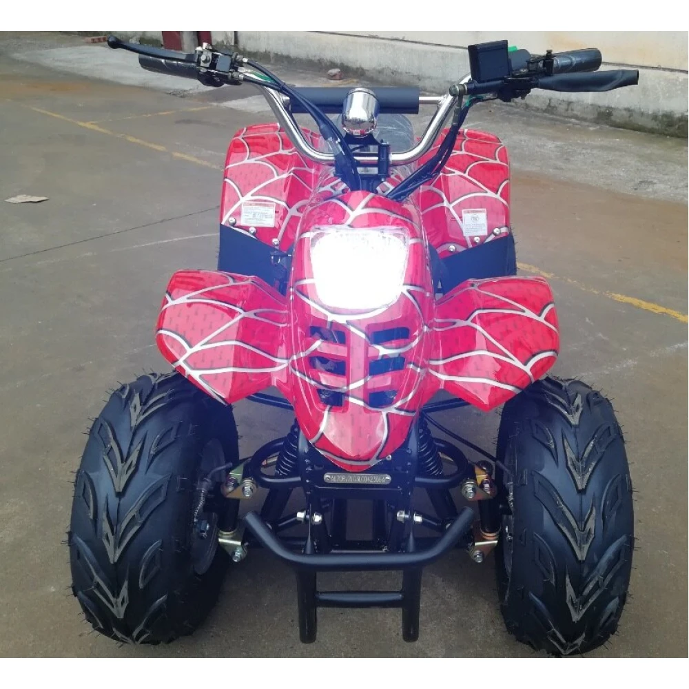 Дизайн квадроцикла таков, что сразу привлекает к себе внимание. Обтекаемые формы и яркая покраска делают своё дело. А узор стилизованный под паутину, напоминает о костюме Человека-паука – это не оставит равнодушным вашего ребёнка.