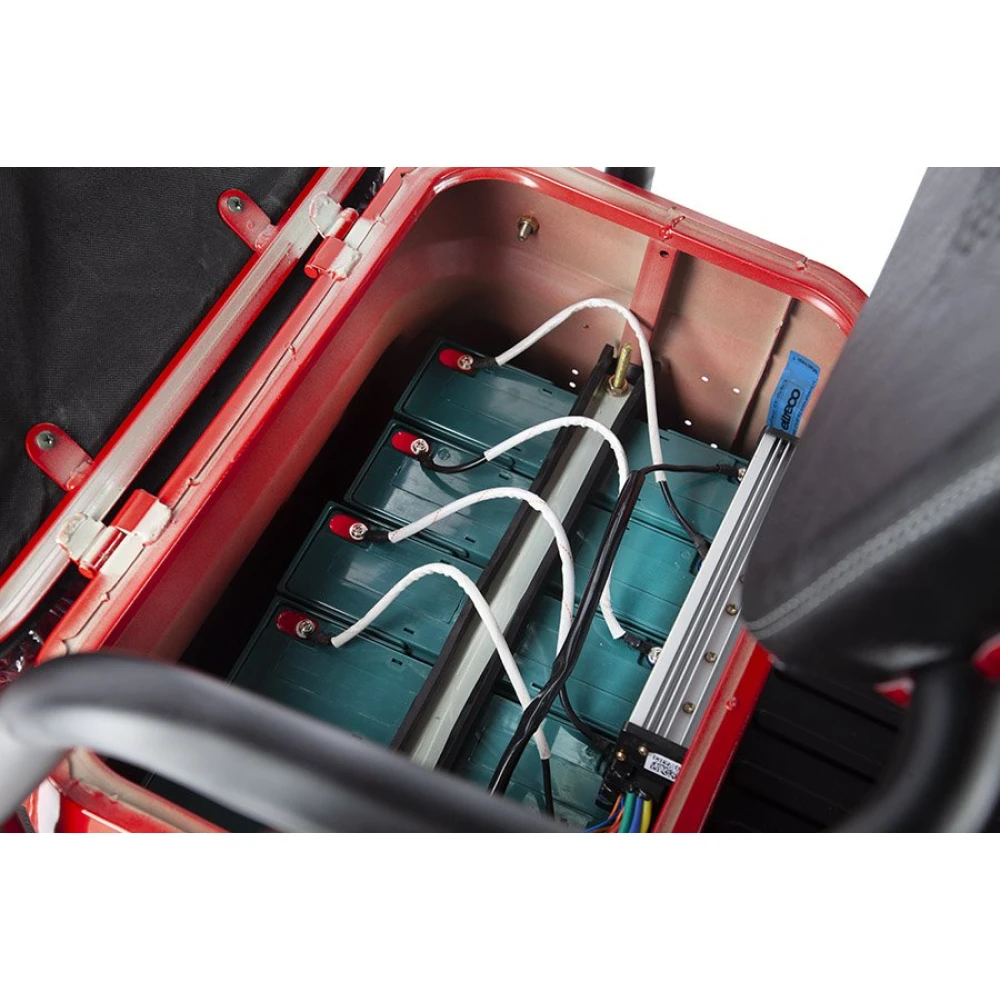 Модель оснащена мягким сиденьем, повторяющим анатомические части тела и снижающими нагрузку с позвоночника. Имеется дополнительное сиденье, благодаря которому одиночная прогулка превращается в удовольствие. Из дополнительных элементов и аксессуаров производитель выделяет вместительную переднюю металлическую корзину, зеркала заднего вида, мощную светодиодную фару, удобную нескользящую платформу для ног.