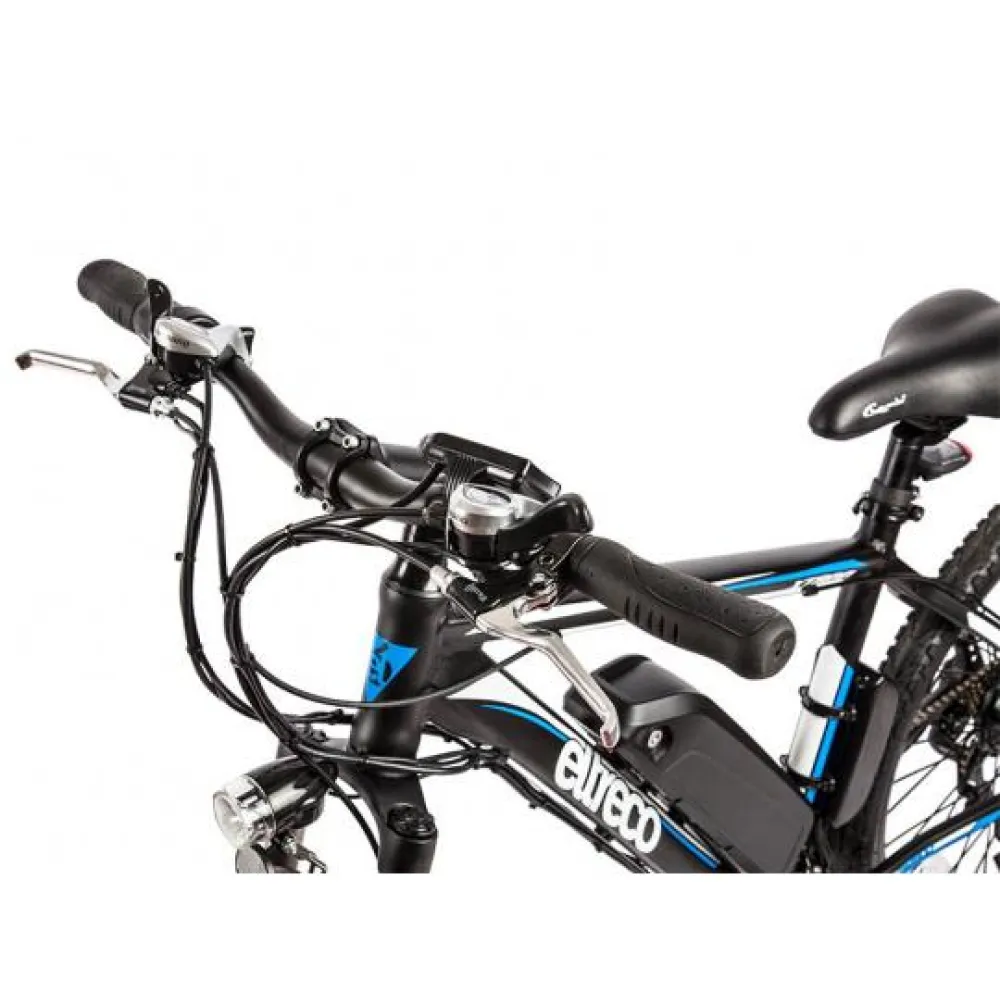 Электровелосипед Eltreco XT-800 имеет мотор-колесо мощностью 350 Вт, максимальная скорость, развиваемая транспортным средством 30 км/ч. Дисковая тормозная система дает уверенность в совершаемых маневрах. Амортизированная передняя вилка делает движение по бездорожью более комфортным.
