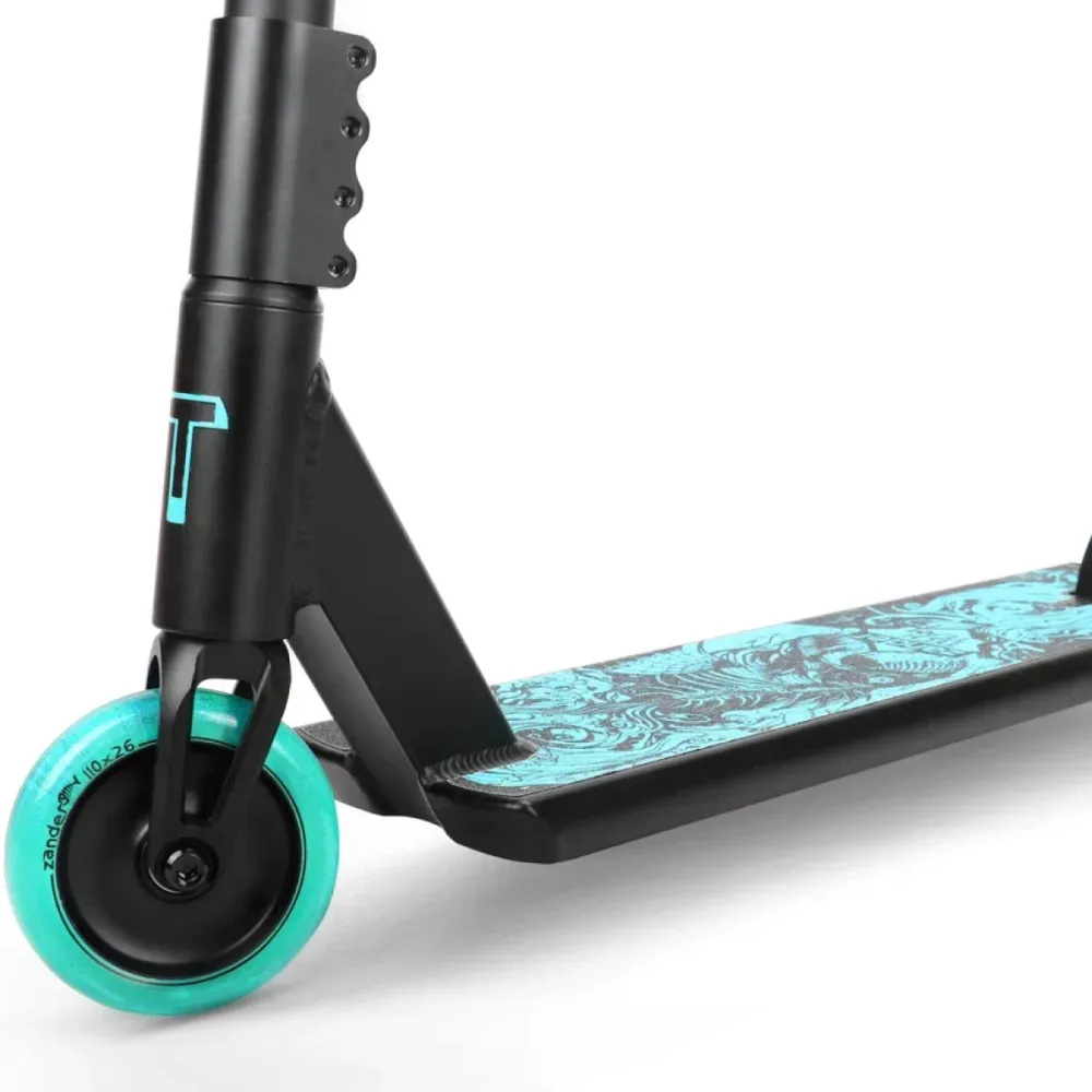 Трюковой самокат Tech Team Zander 2022 в черном цвете предназначен для экстремального катания в парках, специальных спортивных площадках. Подойдёт для роста спортсмена до 190 см и веса 100 кг.