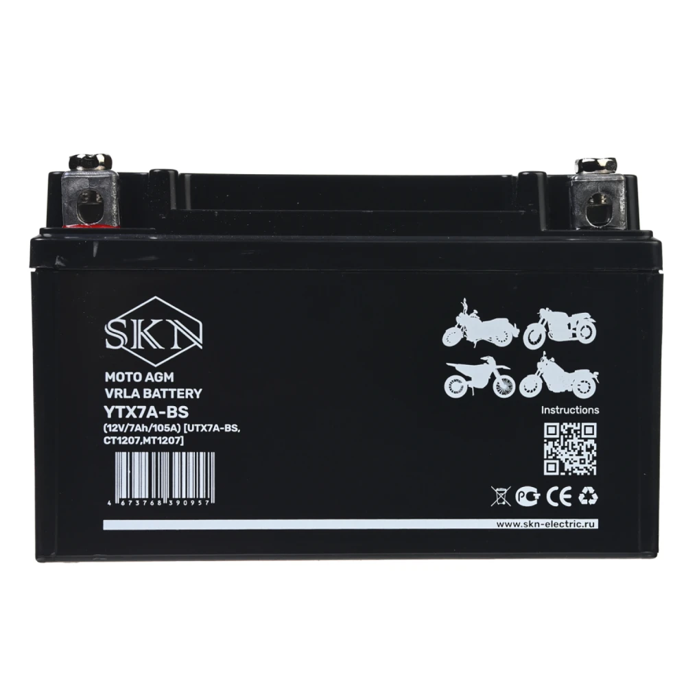 Аккумулятор стартерный для мототехники SKN YTX7A-BS [12V/7Ah/105A) (UTX7A-BS, CT 1207, MT 1207]