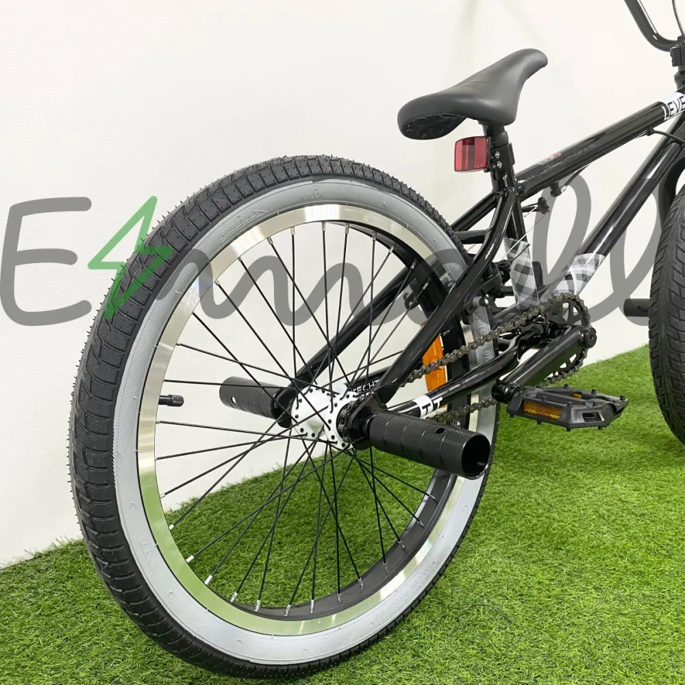 Надежная колесная часть на двойных алюминиевых ободах с накатистой резиной, брендовые покрышки, TT стальной 700 мм руль в сочетании с 4 пегами позволяют ставить трюки по рейлам и делать более серьезные манипуляции.
